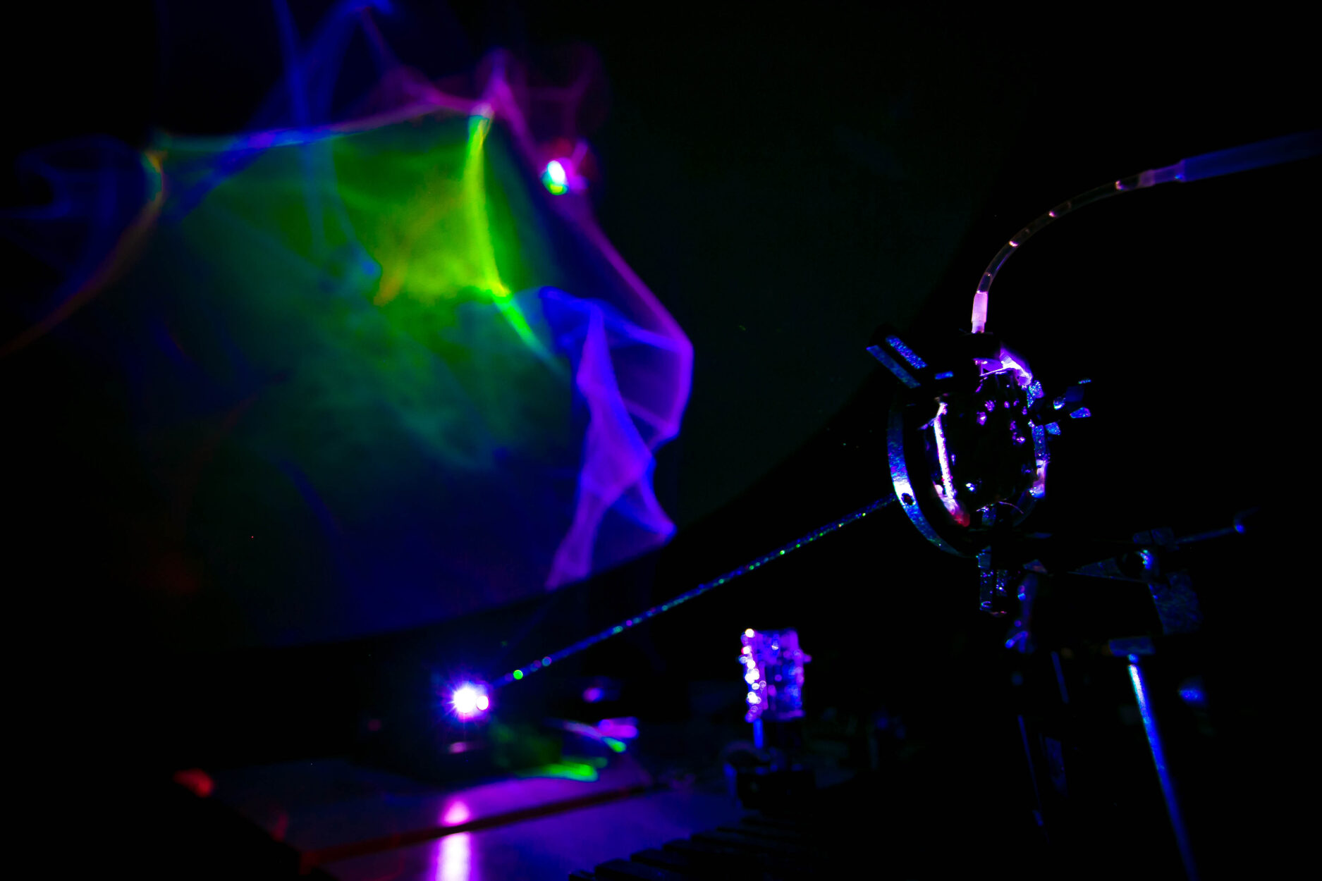 Lézer-interferenciák plusz zenei hangok megfelelő térbeli elhelyzkedése